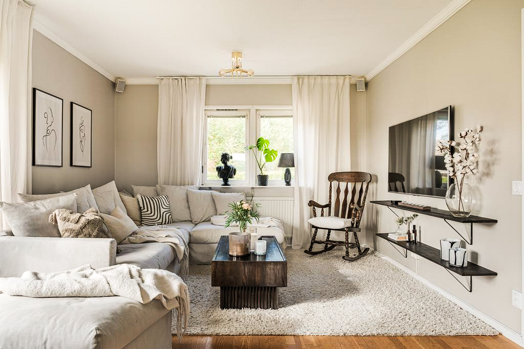 Vi framhäver ditt hems styrkor med hjälp av om-möblering, enklare inredningsdetaljer så som textilier, lampor, växter, färskvaror och enstaka möbler.